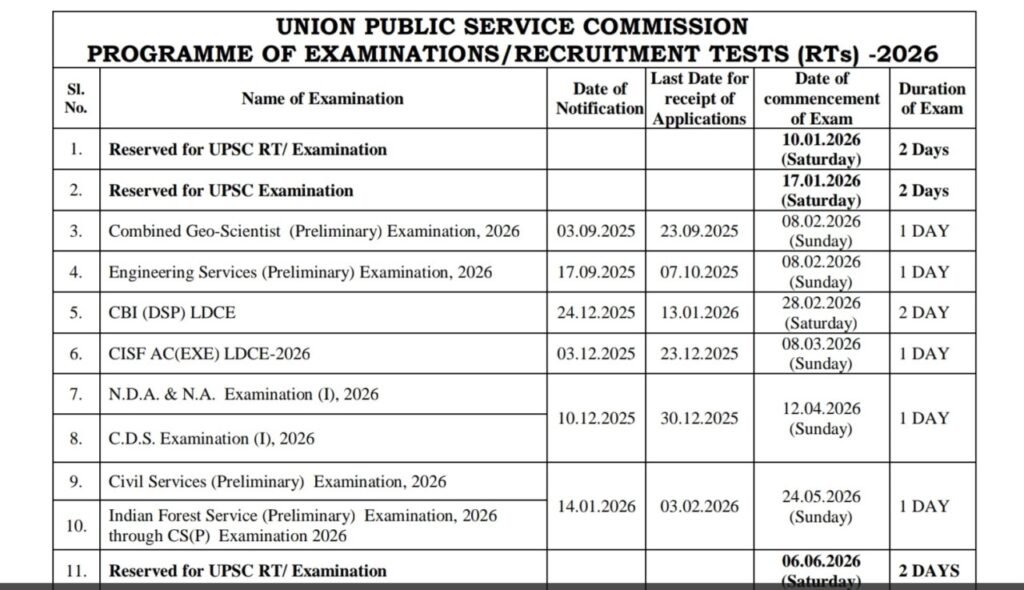 UPSC Calendar जारी किया परीक्षा का टाइम टेबल, इस तारीख को 2 पालियों में आयोजित की जाएगी परीक्षा